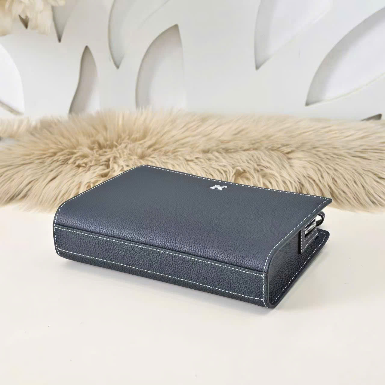 Ảnh chụp thật Ví nam Hermes cầm tay màu đen logo chữ H viền chỉ trắng VNHM29 hàng siêu cấp do xưởng sản xuất cung cấp.