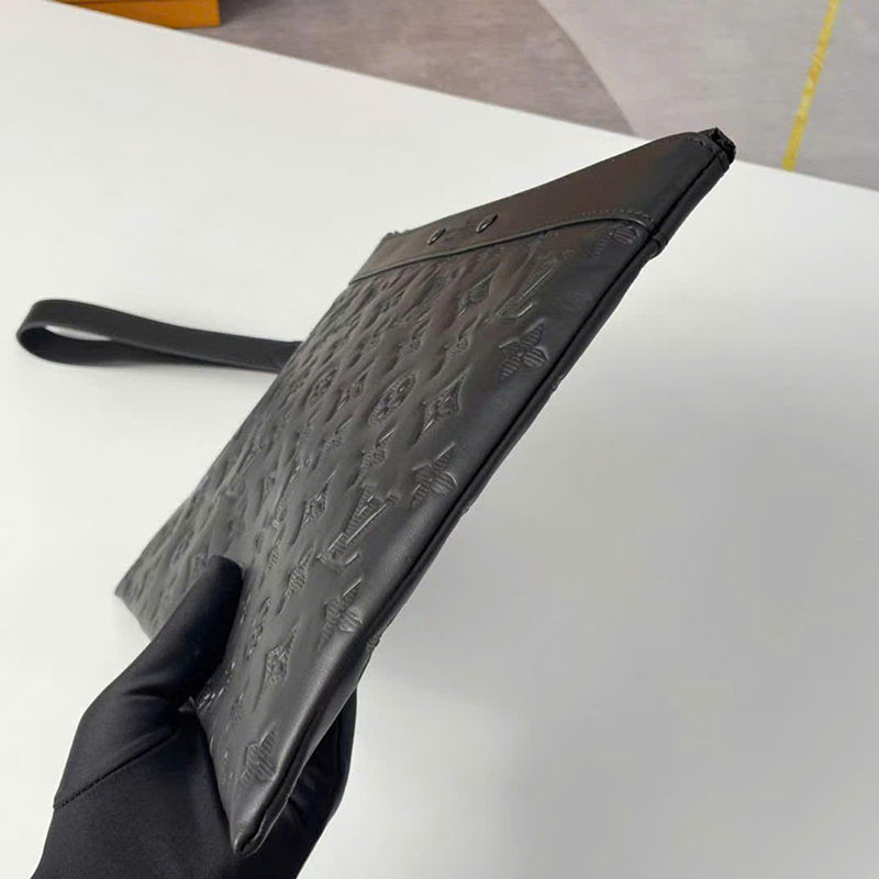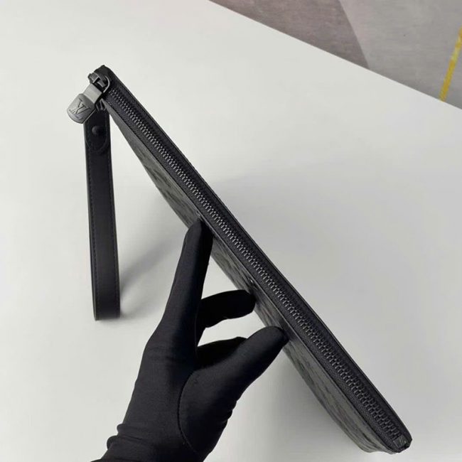 Ảnh chụp thật Ví nam Louis Vuitton cầm tay hoạ tiết in logo dập chìm màu đen dáng chữ nhật VNLV136 hàng siêu cấp do xưởng sản xuất cung cấp.