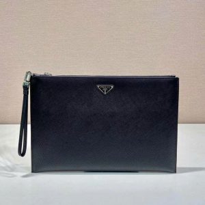 Lợi ích khi mua Ví Prada nam cầm tay màu đen da nhăn họa tiết logo tam giác hai khóa trắng VNP56 siêu cấp tại HoangNguyenStore